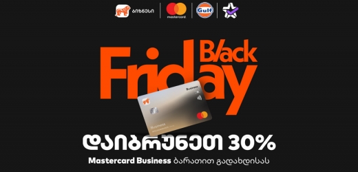 - 27.11.2025 19:1930% ქეშბექი Gulf-ში და Extra.ge-ზე - საქართველოს ბანკის შეთავაზება ბიზნესს Black Friday-ზე
