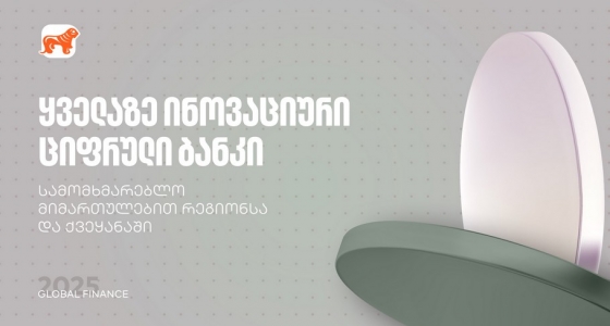 საერთაშორისო გამოცემა Global Finance-მა 2025 წლის „მსოფლიოს საუკეთესო ციფრული ბანკების“ დაჯილდოებაზე საქართველოს ბანკი სამომხმარებლო მიმართულებით როგორც ქვეყნის, ასევე ცენტრალური და აღმოსავლეთ ევროპის მასშტაბით ყველაზე ინოვაციურ ციფრულ ბანკად დაასახელა.