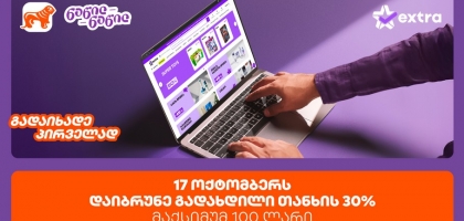 ისარგებლე პირველად საქართველოს ბანკის ნაწილ-ნაწილით და მიიღე 30% ქეშბექი extra.ge -ზე შოპინგისას