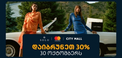 შეთავაზება SOLO მომხმარებლებისთვის - 30 ოქტომბერს ისარგებლეთ 30%-იანი ქეშბექით სითი მოლში